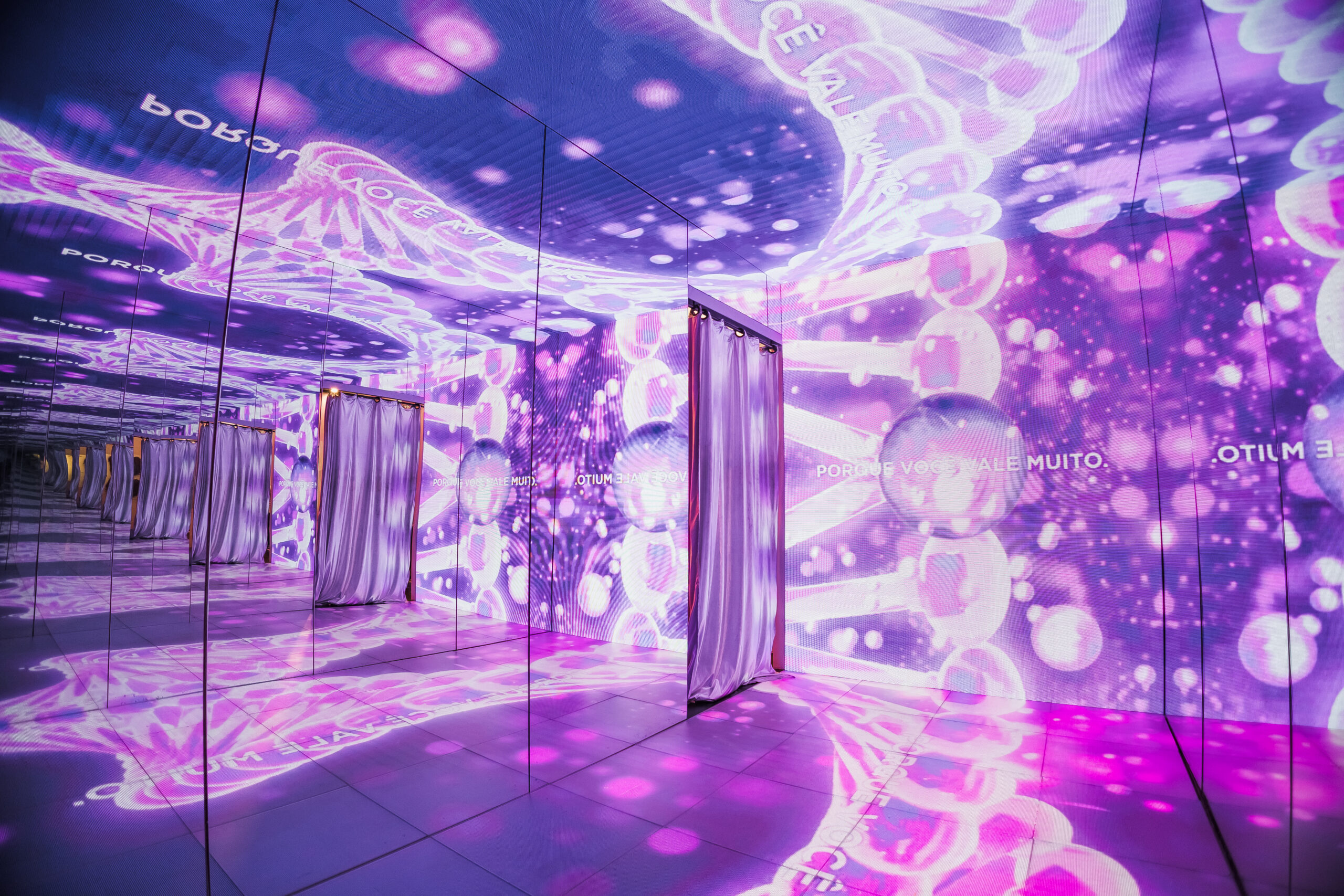 Com cerca de 108m², desenhamos um espaço que conduz o público por uma jornada imersiva que conecta ciência, tecnologia e experimentação. Ao longo do percurso, os visitantes puderam conhecer a fundo a tecnologia inspirada no colágeno, testar os produtos, acompanhar resultados em tempo real e vivenciar momentos altamente compartilháveis.